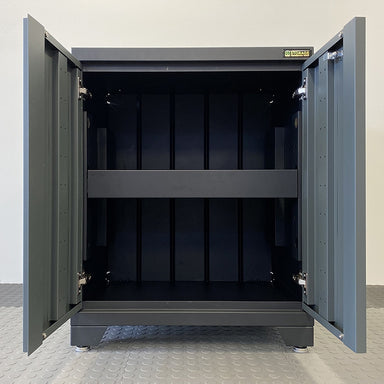 Features Adjustable metal shelf perfect for accessory storage Fully-welded steel frame and lockable double walled doors Soft closing hinges with m...