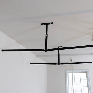 Overhead ceiling storage for ladders 90 degree rotating base fits most ceiling joists Easy installation, all hardware included 10" - 18" adjustabl...